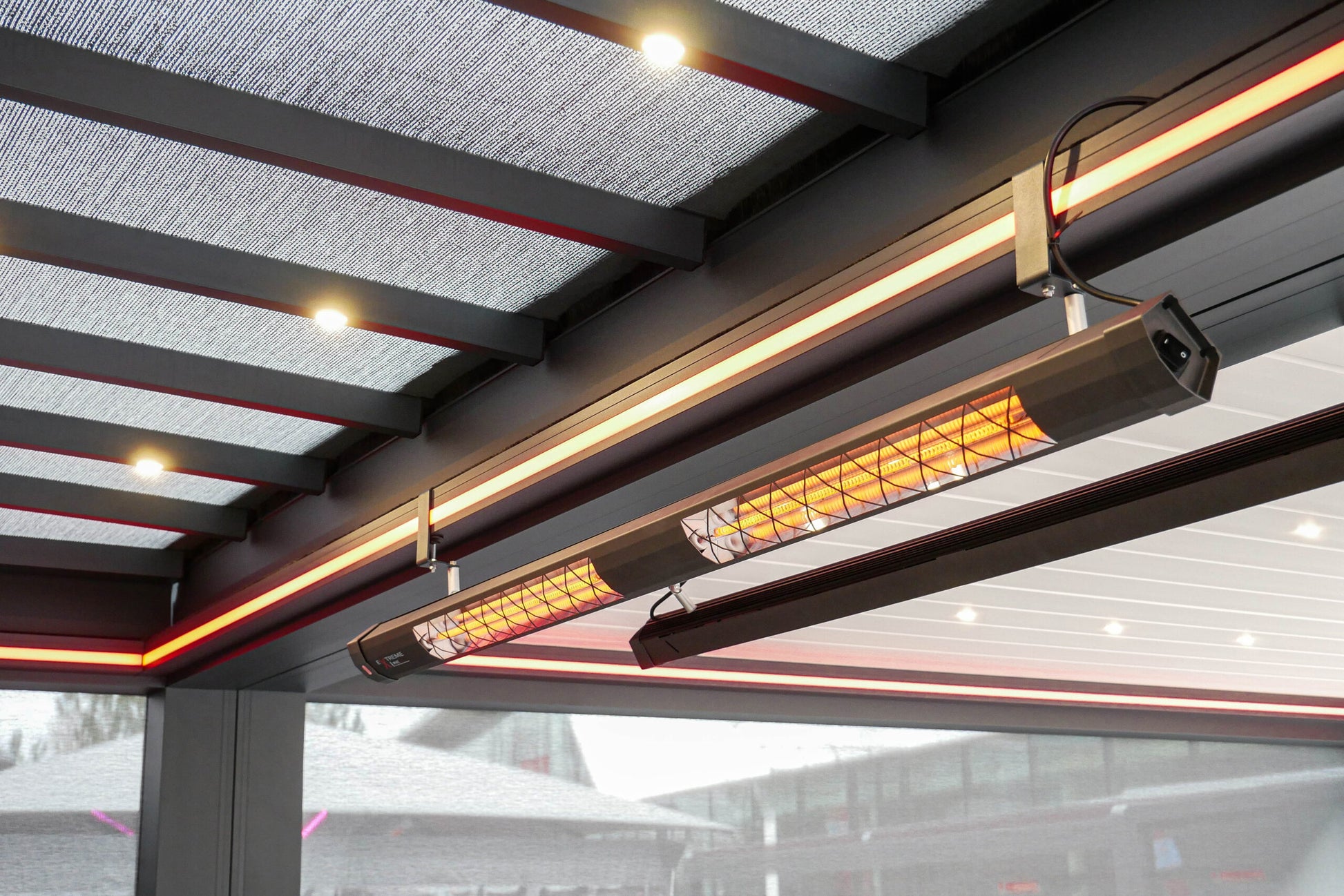 Durch seine schlanke Form fügt sich der HeatFlare Carbon besonders harmonisch in moderne, kubische Dachkonstruktionen, Design-Terrassen und Gastronomie-Schirme ein. Ob im Winter- oder Sommergarten, auf der Terrasse, am Außenpool, im Spa- oder Gastronomiebereich – der Strahler liefert zuverlässige, angenehme Wärme bei gleichzeitig edler Optik.